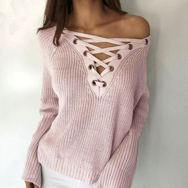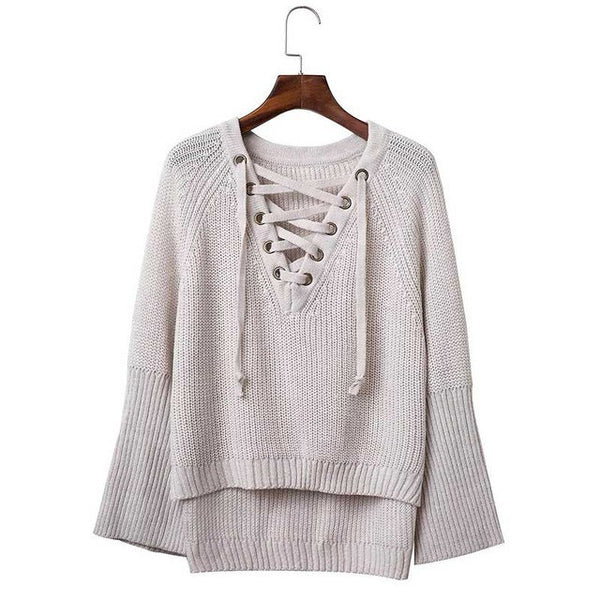 LACE UP KNITTED ONE SIZE SWEATER